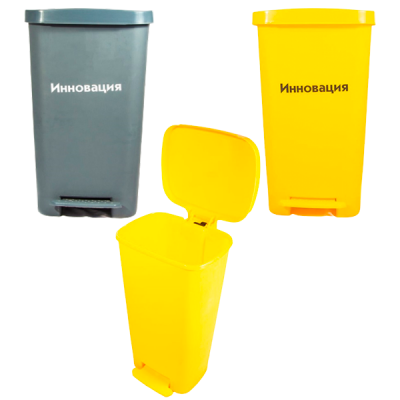 • Исполнение. Контейнеры с сечением в виде прямоугольника придвигаются к стене, допустимо расположение в ряд - практически вплотную друг к другу. Это позволяет экономить ценную площадь в медкомплексе. За счет небольшого объема (25 литров), баки подходят для использования в кабинетах узких специалистов, смотровых и прививочных, приемных отделениях, пищеблоках, душевых и уборных (неинфекционных отделений). Конструкция дополнена плотно закрывающейся крышкой и ножной педалью. Руки медперсонала и пациентов остаются свободными.