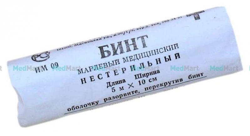 Нестерильный марлевый мед. бинт по ГОСТ 1172-93 5м*10см, инд.уп.