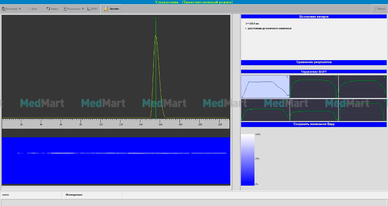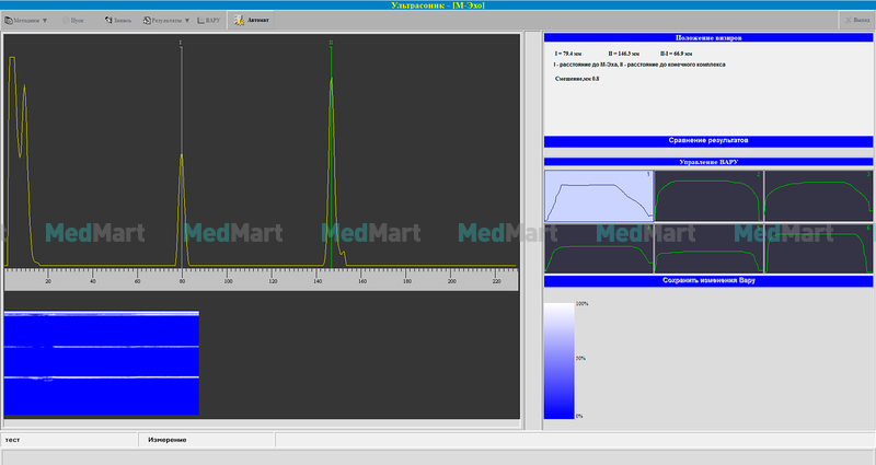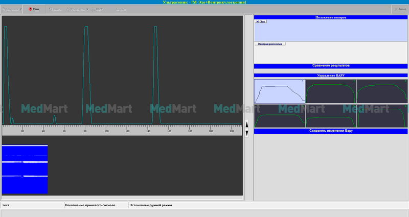 • Данный эхоэнцефалограф позволяет оператору запускать/останавливать процесс зондирования, редактировать параметры автоматического обнаружения и его результаты, самостоятельно выбирать методики, выполнять расчёт различных параметров принимаемых эхосигналов.