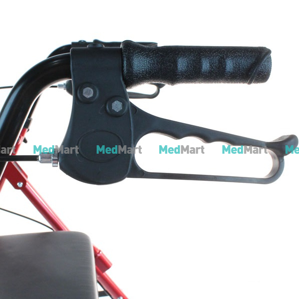 • Материалы. Каркас каталки выполнен из алюминиевого сплава, что делает конструкцию облегченной. Рукоятки из пластмассы обладают противоскользящими свойствами. Массивные двухпозиционные тормозные механизмы (ручной тормоз) рассчитаны на интенсивную эксплуатацию. В ходунки с колесами заложена функция как полного торможения, так и подтормаживания. На задних колесах установлены стояночные тормозы.