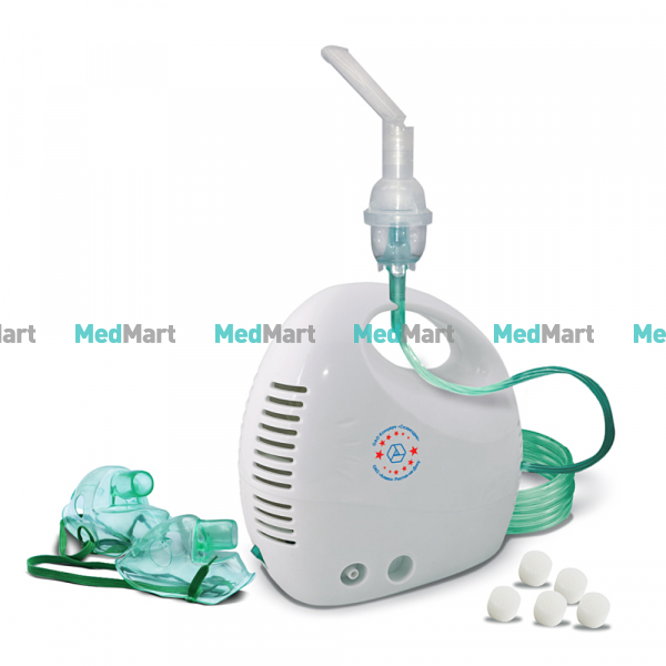 • Богатая комплектация. Ингалятор поставляется с масками, переходниками, мундштуком для терапии горла, шлангом, а также запасными воздушными фильтрами. Для начала работы требуется приобрести только лекарственный препарат или приготовить раствор.