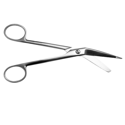 • Конфигурация. Одно лезвие с тупым концом более короткое, на втором располагается пуговка. Это утолщение необходимо для атравматичного подведения лезвия под повязку. Это позволяет при разрезании бинтов ножницами Листера не повреждать кожу пострадавшего, пациента при первичном либо плановом осмотре в медицинском учреждении.