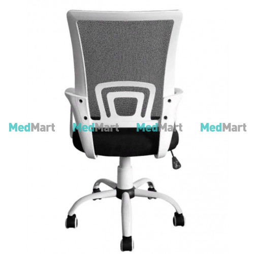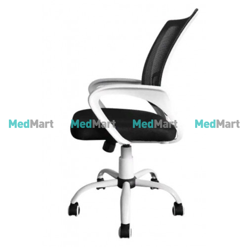• Классическая расцветка для любого стиля и дизайна интерьера. Сидение и спинка выполнены в черном цвете, подлокотники, опора и основание - в белом. Ролики комбинированные. Материал сидения - дышащая ткань, устойчивая к загрязнениям, выцветанию и истиранию.