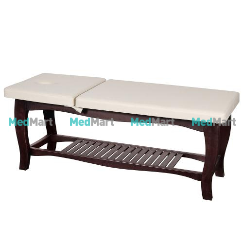 • Исполнение. Основу этой модификации составляют бук - массив натуральной древесины. Природный материал характеризуется длительным сроком эксплуатации. После качественной обработки (покрытие с оттенком "красное дерево"), которую проходят все медицинские изделия производителя, кушетка выдерживает нагрузку до 300 кг. Не утрачивает первоначальный внешний вид, не подвергается растрескиванию и деформации. Как и каркас, обивочный материал обрабатывается дезинфицирующими средствами с предусмотренным для этих целей составом.