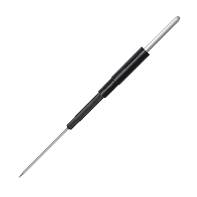 • Исполнение. Стержень инструмента прямой, рабочая часть представлена тонкой иглой. В аппаратной части располагается штекер диаметром 4 мм. Размер остроконечного электрода составляет 0,8 мм.