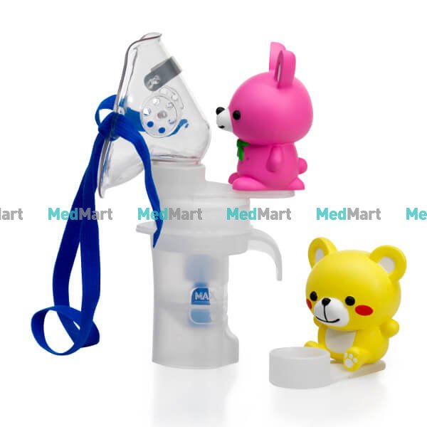 • Яркое оформление, которое понравится ребенку. Небулайзер выполнен в желтом цвете, не имеет мелких деталей, включает в себя резиновые игрушки, которые можно надеть на камеру.