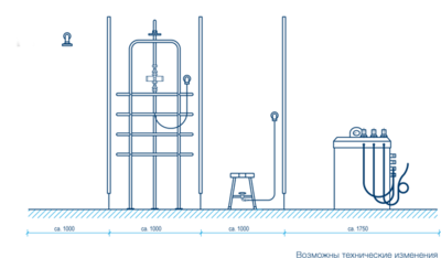 • Специальный однорычажный смеситель с шаровыми вентилями DN 25/32 для установки и фиксации точного смешения воды, а также для быстрой смены температуры воды при проведении контрастного душа,