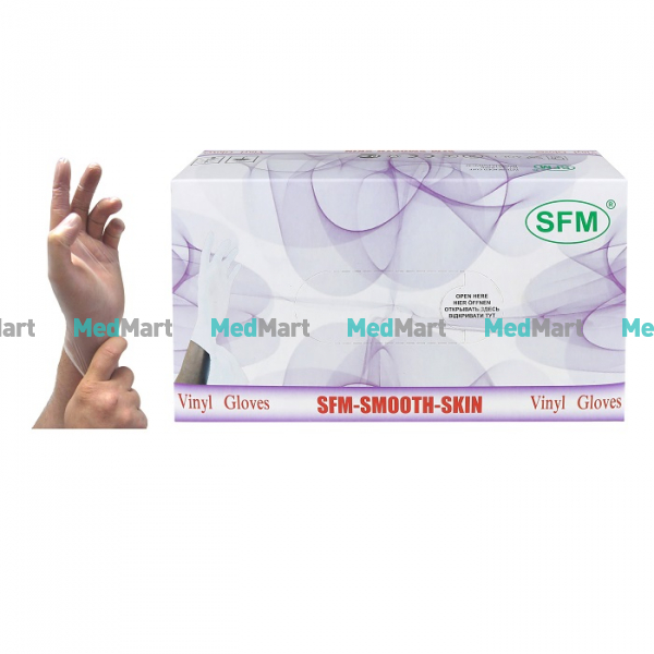 Главная Расходные материалы Перчатки медицинские Перчатки виниловые нестерильные неопудренные SFM, р-р М, 50 пар