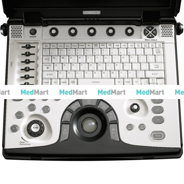 • Органы управления и экран. Помимо физических целевых кнопок (в том числе трекбола), аппарат для УЗИ LOGIQ e имеет полноценную клавиатуру. Последняя используется для введения данных о пациенте, создания врачебных заметок и работы с результатами ультразвуковых исследований. Жидкокристаллический монитор с диагональю 15 дюймов настраивается по углу наклона. Материалы изготовления рассчитаны на эксплуатацию в медицинских условиях, имеют пыле- и влагозащиту.