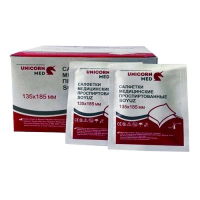 Салфетки медицинские проспиртованные 135*185 мм, изопр. спирт, 50 шт.