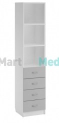 4 выдвижных шкафчика в модели АСК ШК.14.03 удобно использовать для оптимального расположения аппаратуры, диагностического оборудования небольших размеров, расходных материалов и инструментов. Каркас выполнен из ЛДСП, для облицовки кромок использованы накладки из ПВХ.