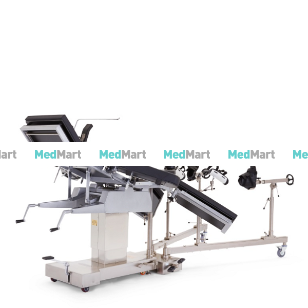 Операционный стол Армед ST-V - специализированная рентгенопрозрачная мебель. Предназначена для оснащения хирургических блоков в БСМП, гинекологических, кардиологических и иных узкопрофильных центрах. Настройка положения стола под конкретное оперативное вмешательство осуществился механогидравлическим приводом. Особенностью этой модели является поставка заказчику вместе с ортопедической стойкой. Голеностопная секция поделена на две равнозначные части, предусмотрена возможность независимой регулировки. Опоры для плеч, рук и ног, а также анестезиологическая стойка включены в комплект поставки.