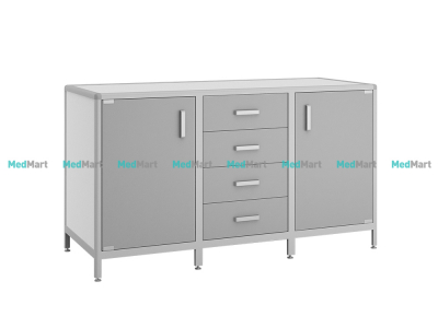 • Основа изготовления - ламинированная плита (8 мм), которая не боится влаги, дезинфицирующих растворов и химических реагентов. Фасады шкафов и дверцы выполнены из того же материала преимущественной толщины (16 мм).