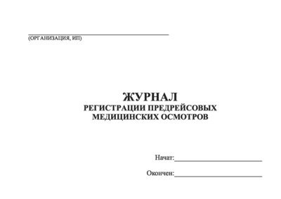 Журнал регистрации предрейсовых, предсменных медицинских осмотров